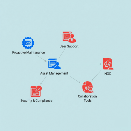 - Security & Compliance: Endpoint protection, antivirus, patching, and regulatory compliance.